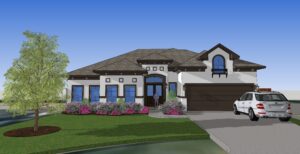 FINISH: Stucco and Stone SQ FT: 2,812 STORIES: 1 story BEDROOMS: 3