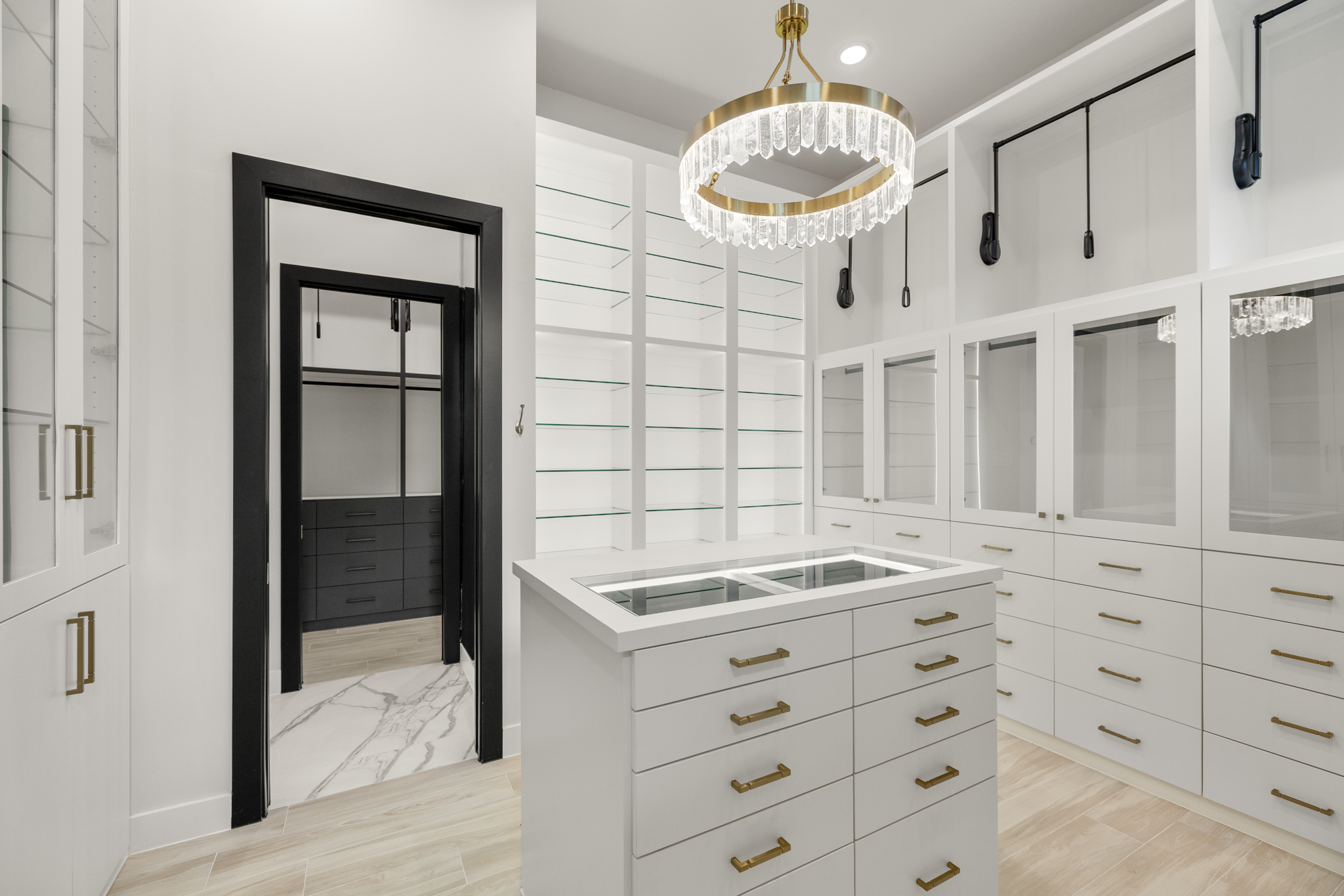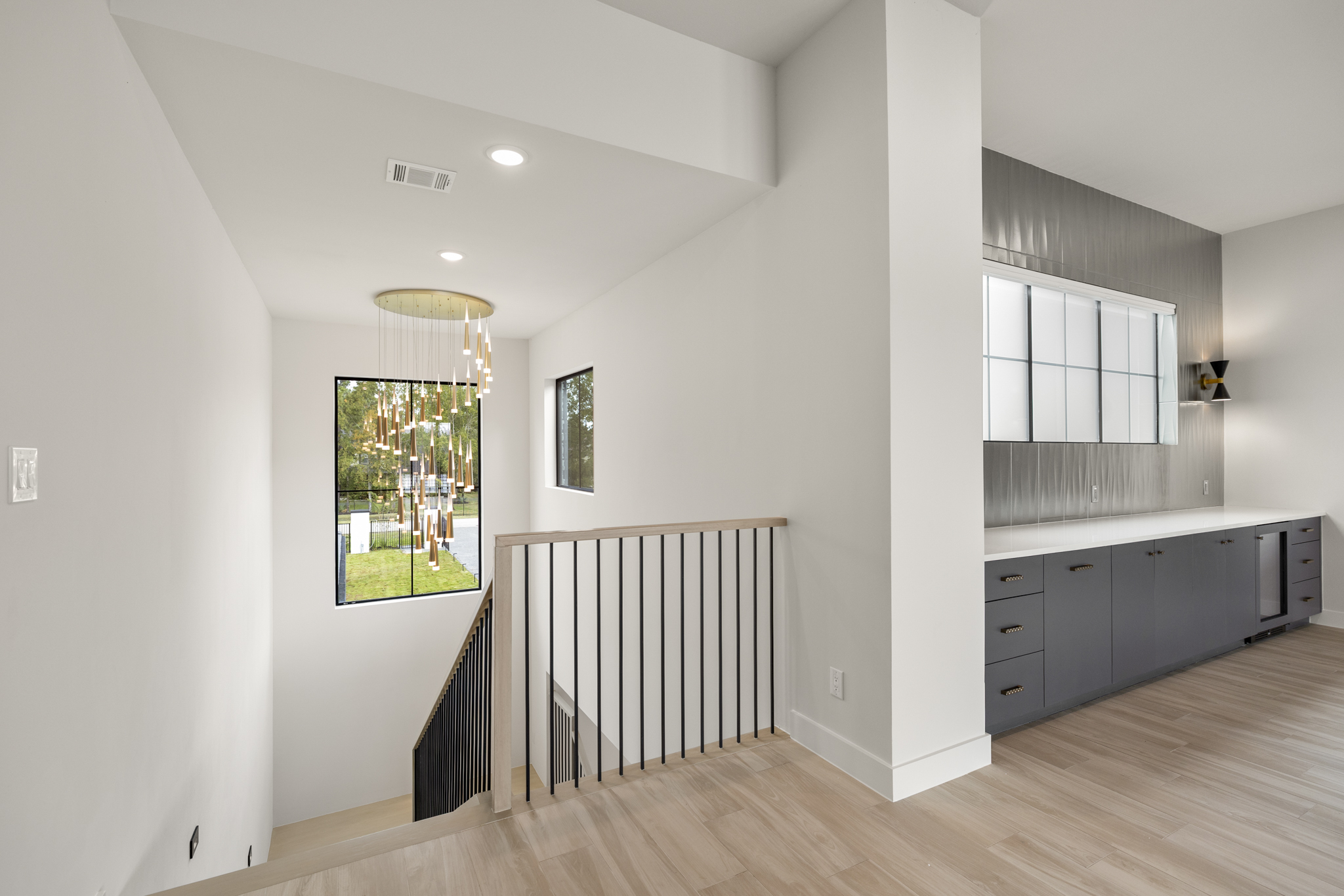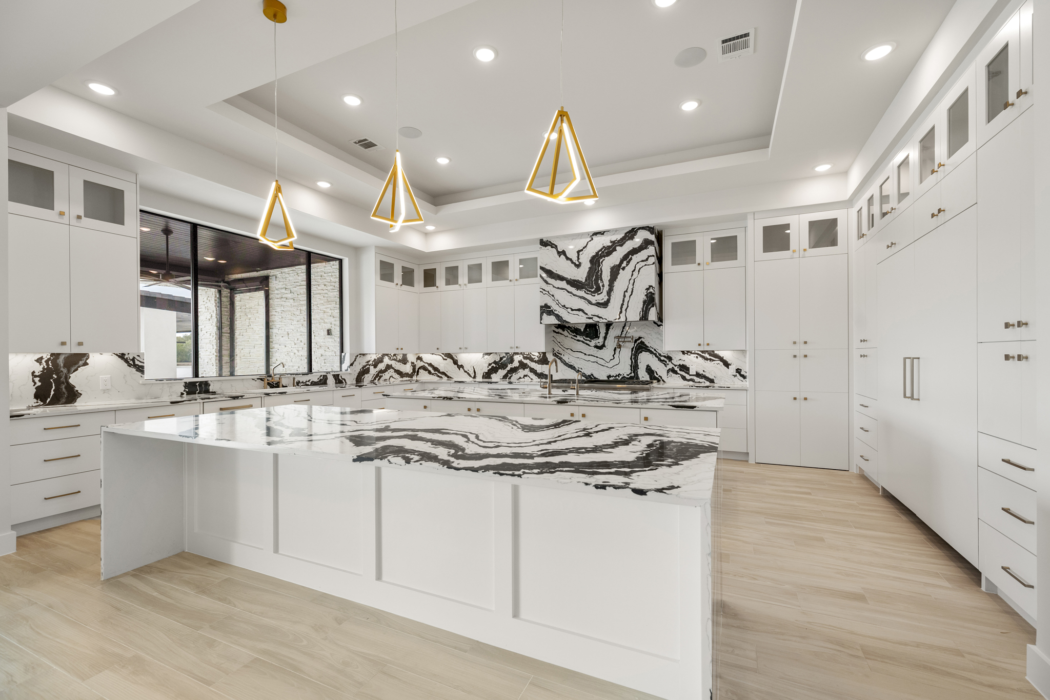 This custom masterpiece was built for none other than Simone Biles and Jonathan Owens — a home that blends bold design with everyday livability. From the striking black-and-white marble throughout the kitchen and bar to the sleek fireplace wall anchoring the soaring living space, every detail was made to match their style, energy, and lifestyle.