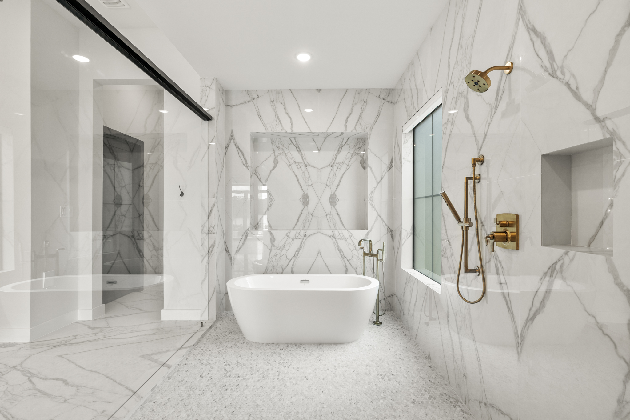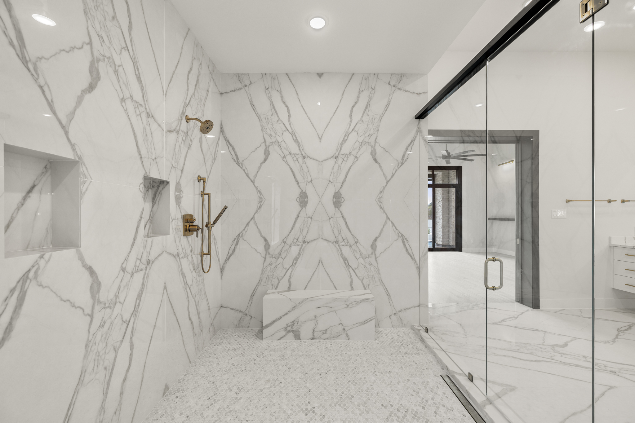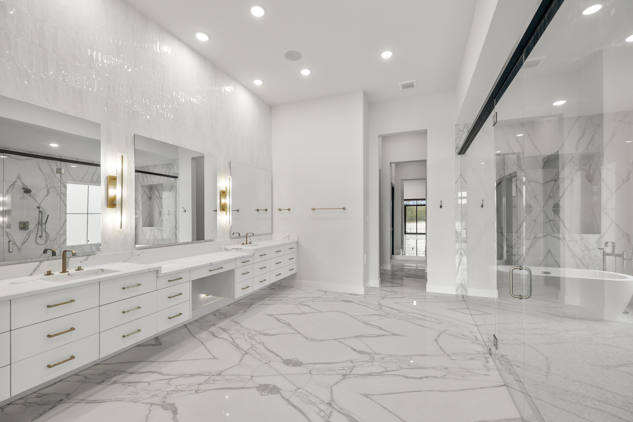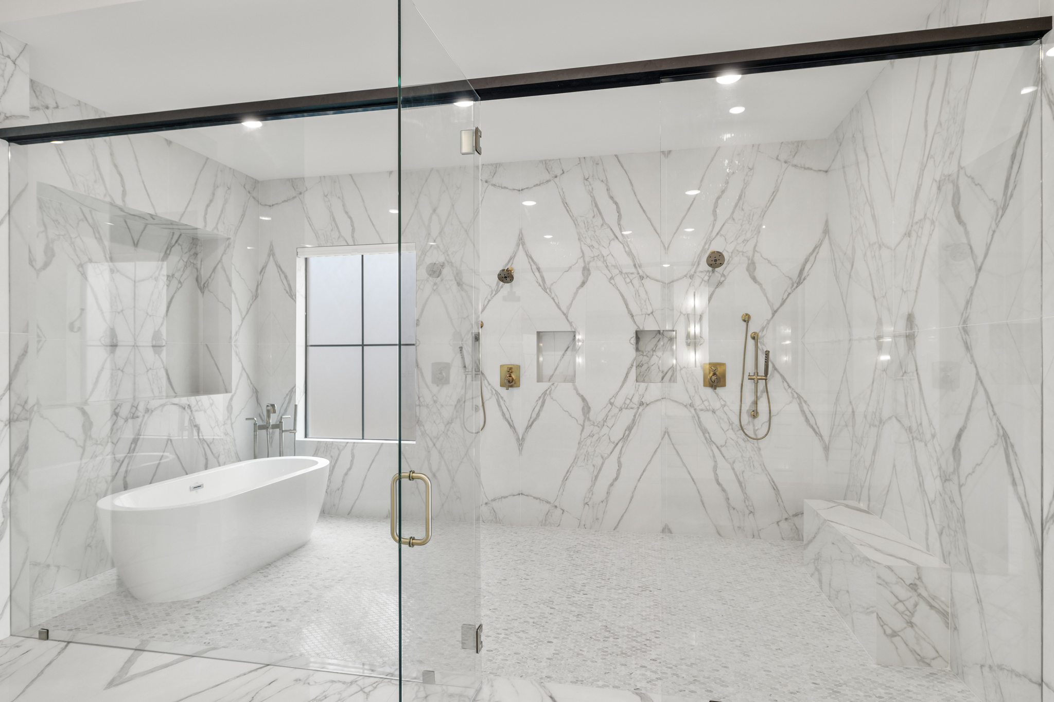 This custom masterpiece was built for none other than Simone Biles and Jonathan Owens — a home that blends bold design with everyday livability. From the striking black-and-white marble throughout the kitchen and bar to the sleek fireplace wall anchoring the soaring living space, every detail was made to match their style, energy, and lifestyle.